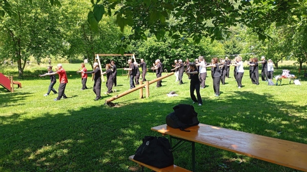 Pour marquer l’anniversaire de la mutation de l’École Johannes Mergner de Berlin en Centre de TaiChi Yang Family, une semaine spéciale s’est déroulée du14 au 29 Avril en présence de Maître Yang Jun. Le stage a pris place au centre lui-même et dans un gymnase du centre-ville, non loin du très célèbre Palais Charlottenburg. Y sont venus des participants du Canada, des USA, de Suède, d’Espagne, Bulgarie, Autriche, Pologne et, bien entendu de toute l’Allemagne : ce stage international a été axé sur la Forme Essentielle, le Tuishou et l’Epée.