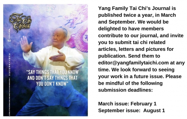 The next issue of Connections will be published in March 2026. Please send any announcements to me at carolyn@yangfamilytaichi.com by February 22, 2026.