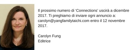Siamo comunque lieti di annunciare che Edward Moore è il nostro nuovo editore. Edward ha iniziato lo studio del Tai Chi Chuan con il Gran Maestro Yang Jun nel 2000 ed è diventato discepolo nel 2012. Egli ha collaborato alla rivista come un eccellente scrittore e assistente editoriale. Ha sempre mostrato un alto livello di interesse e dedizione alla rivista, avendo profonda cura nel fornire varietà di articolil e producendo scritti di alta qualità. Confidiamo che avrà successo nel suo nuovo ruolo. Per favore aiutateci a dare il benvenuto al nuovo editore della rivista Edward Moore. editor@yangfamilytaichi.com