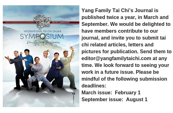 The next issue of Connections will be published in March 2020. Please send any announcements to me at carolyn@yangfamilytaichi.com by February 16, 2020.