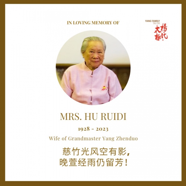 Es con gran pesar que anunciamos el fallecimiento de la Sra. Hu Ruidi, la esposa del Gran Maestro Yang Zhenduo. Murió pacíficamente y sin enfermedad en las primeras horas del 7 de junio del 2023, en su hogar a la edad de 96 años.