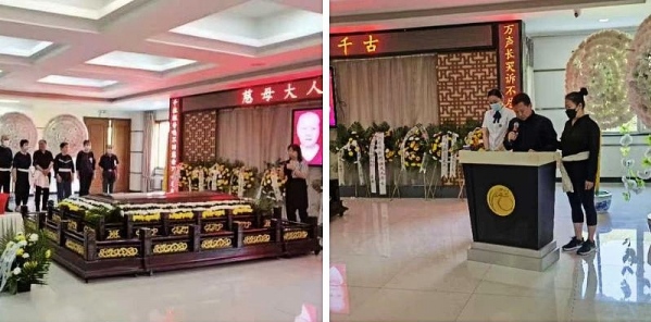 La Sra. Hu Ruidi nació en 1928. Luego de casarse en la familia Yang, fue muy devota cuidando a su familia, ayudando a su esposo, enseñando a sus hijos y criando a sus nietos. Fue una muy buena esposa, hermosa y sabia, filial con sus mayores y amorosa con sus niños, generosa en palabras y acciones. Trabajó duro para cuidar de su familia y durante toda su vida fue una gran ayuda para el fallecido maestro, Yang Zhenduo. Su funeral se realizó el 9 de junio en el salón Luhe de la Casa Funeraria Longshan, China.