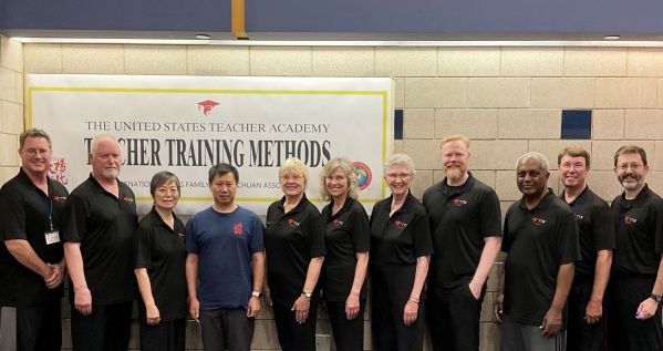 杨老师还公布了国际杨氏太极拳认证的首批八星教练获得者,他们是Pat Rice 和Hang Hoong Wang,七星教练获得者,他们是Bill Walsh, Andy Lee, Angela Soci, Claudio Mingarini和Ray Tom, 杨军老师给他们颁发了证书和证章。