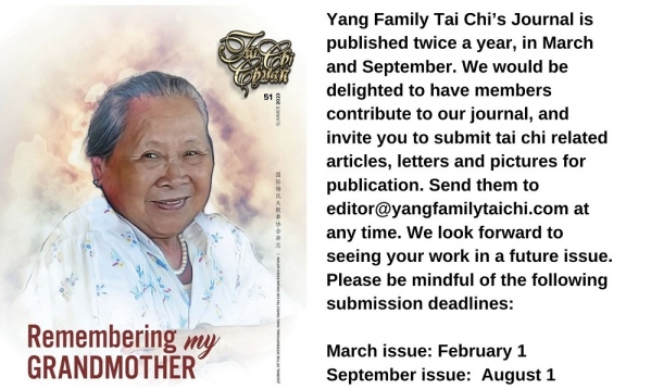 I hope that all members will have a long and fulfilling relationship with our association. For those members who have been with us through the years, I appreciate that you have chosen to stay with us as we continue to spread tai chi chuan worldwide to help humankind.