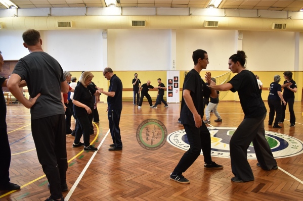 I partecipanti hanno studiato movimenti singoli ripetuti e alcuni esercizi fondamentali di allenamento per costruire una struttura di allenamento utile per il metodo HIIT (High Intensity Interval Training). Durante il seminario, Roberto Carchio ha presentato una conferenza con diapositive sul metodo scientifico e i benefici dell'HIIT nel sistema del Tai Chi della Famiglia Yang.