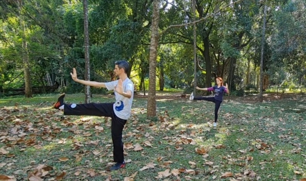L’instructeur Geraldo Alves et Nathália Oliveira ont pratiqué au Parc Areião.