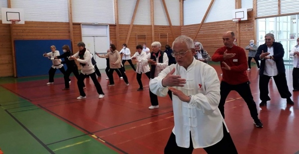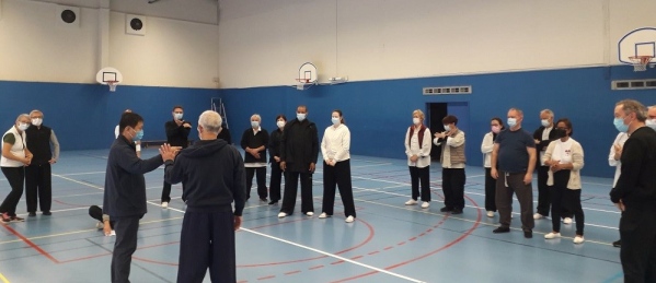 Les élèves qui participaient au stage de Me YANG Jun ont pratiqué avec lui le 30 avril.